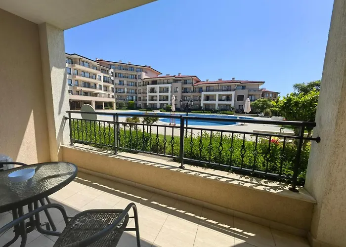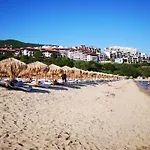 Nestled in the Yurta district, the beachfront 38 m^2 Studio Apartment has a terrace with a swimming pool. Action Aquapark is within a 10-minute drive of the 1-bedroom apartment and Church of the Holy Archangels Michael and Gabriel is located approximately 15 minutes away by car.